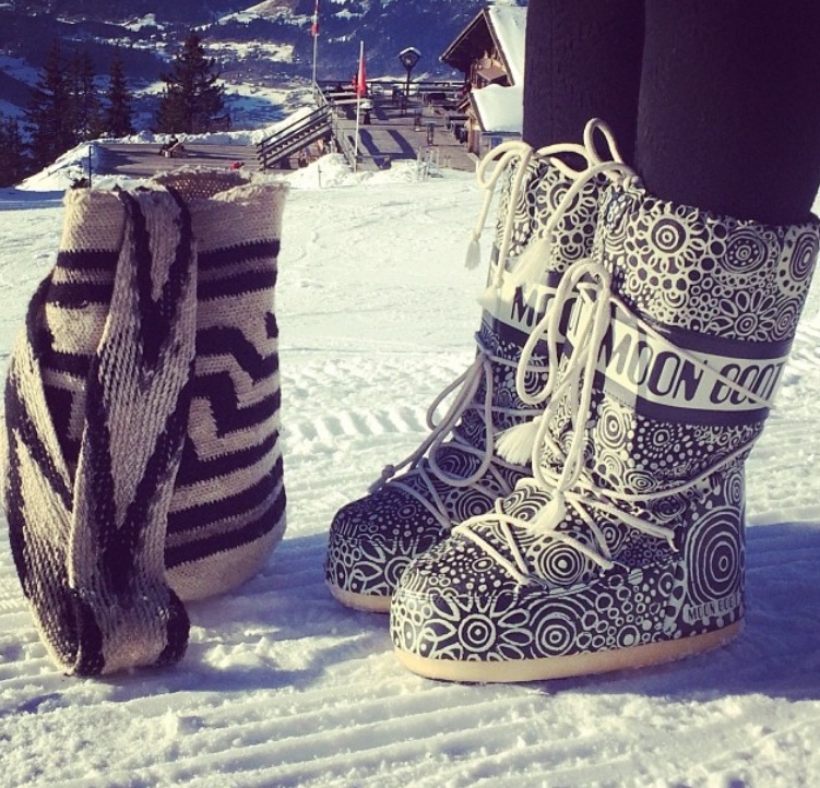Tatiana Santo Domingo’s Instagram account of her boho-chic clothing business Muzungu Sisters, showcased a Colombian hand-made Arhuaco bag and a pair of Moon Boots in Gstaad.